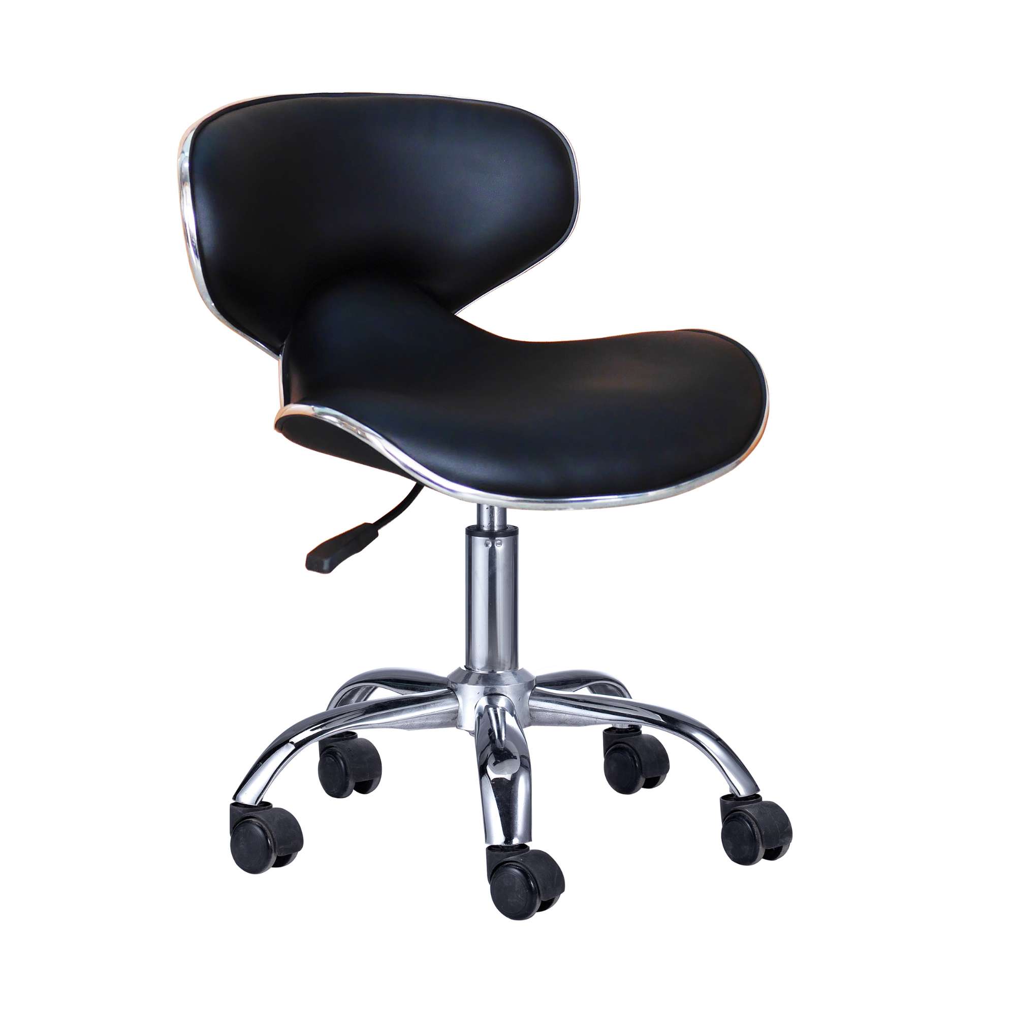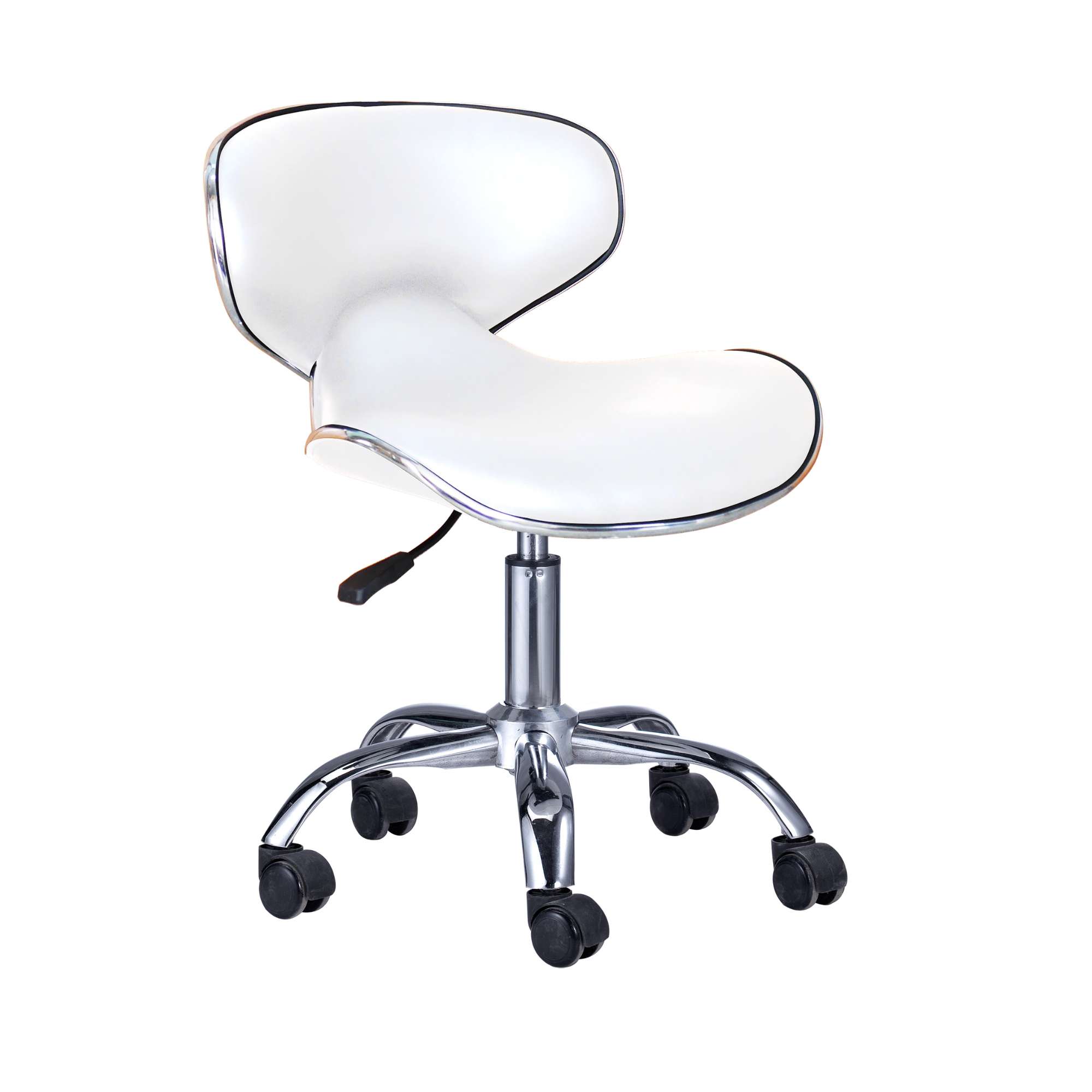 Contemporary style rolling stool with hydraulic adjustable height.