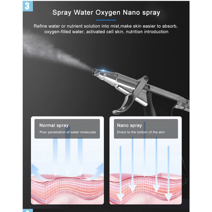 OXYGEN nebulizer gun for nourishing new skin with vitamins and other serums after micro dermabrasion, chemical peels and other exfoliation treatments. Includes big size glass bottle so you never run out of product during oxygen infusion treatments. Adjustable pressure.