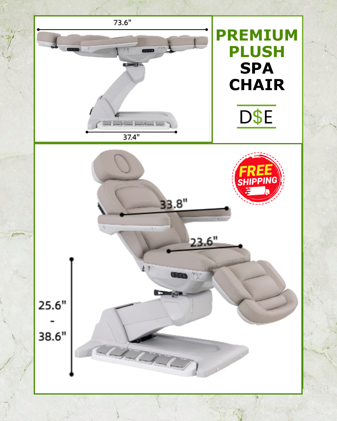 We are extremely happy with the Premium Plush Medical Spa Chair/Treatment Table. First, it looks beautiful and very high-end—it instantly upgraded the look of our treatment room and gives a true luxury spa feel.