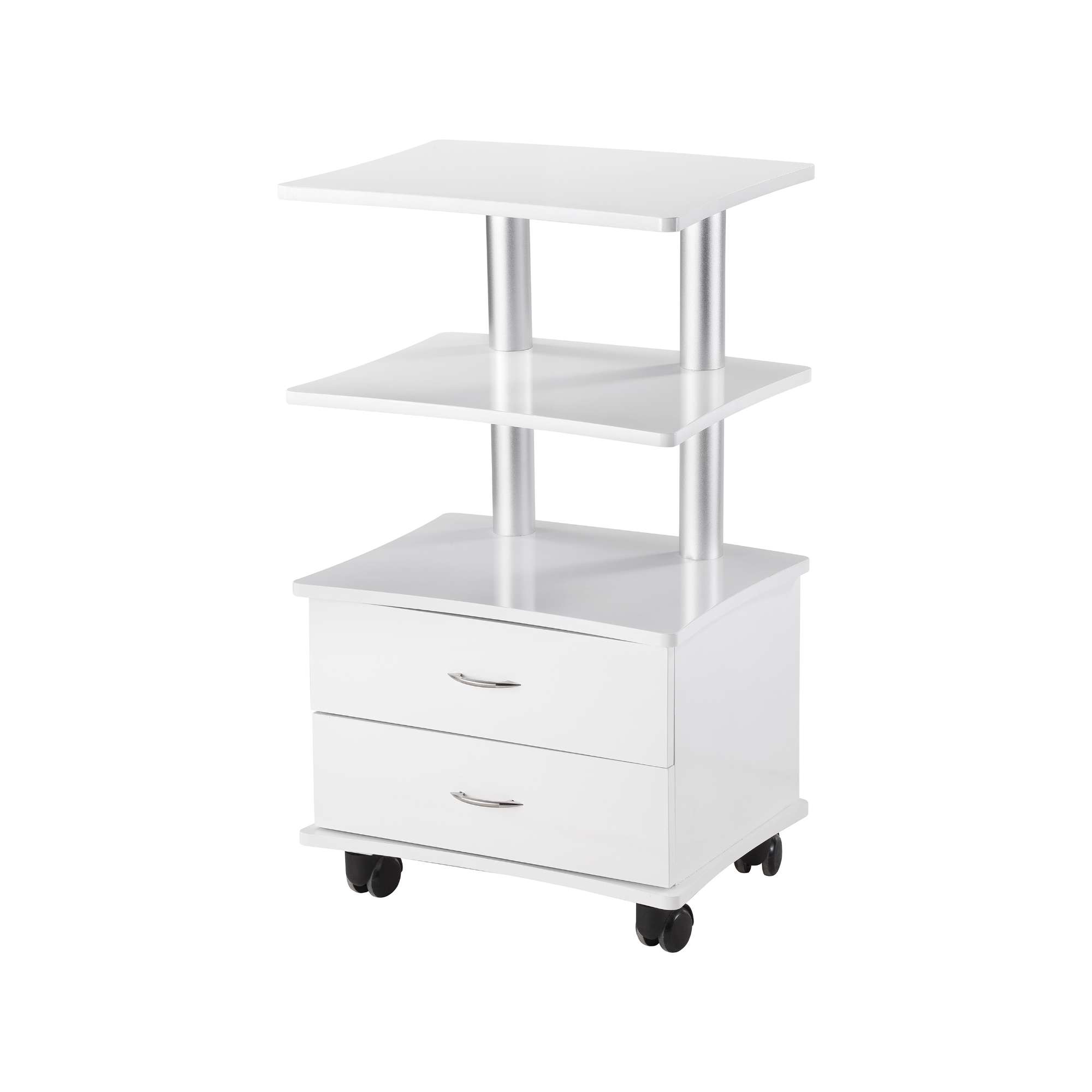 Easily store products or keep them in reach during sessions with this wooden cart. Solid wood (A-1 Quality) construction. Features 2 shelves and 2 sliding drawers.